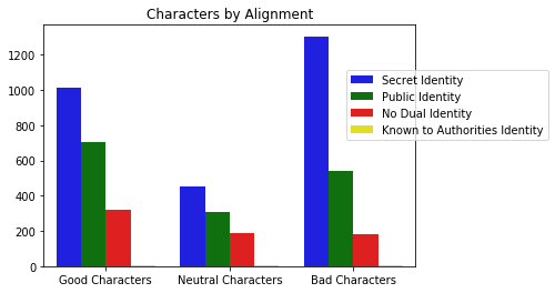 - Analyzed different characteristics of Marvel Heroes, such as total number of appearances and identity by alignment