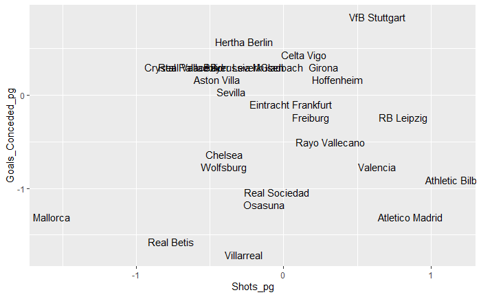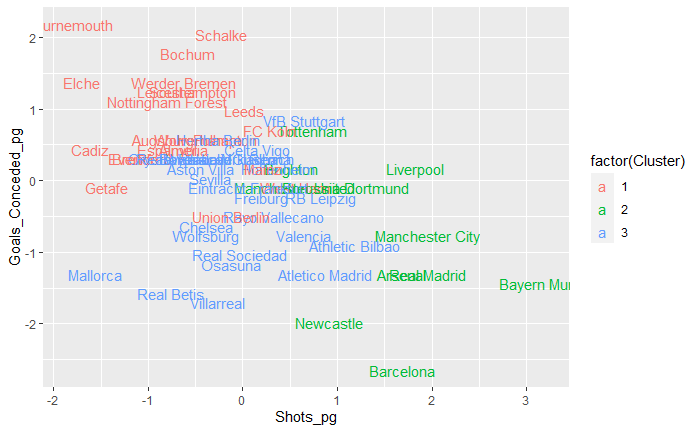 - Analyzed the characteristics (play style and league performances) of each category based on number of shots per game and goals conceded per game